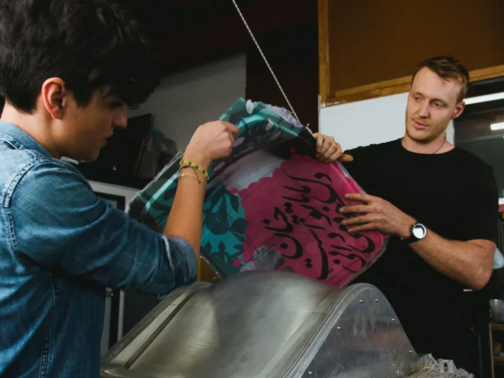 Between November 2024 to February 2025 at the Australian Design Centre in Sydney, RK Collective presented Crafted Liberation, an extraordinary exploration of product design at the intersection of collective action and material innovation. The exhibition transformed discarded headscarves into elegant stadium seats, amplifying the voices and resilience of Iranian women in the fight for gender equality.